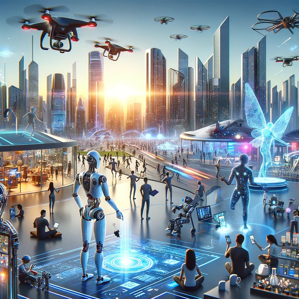 As evening falls, the city lights twinkle a little brighter, energized by the efficient, clean energy systems managed by AI. Social gatherings, though less frequent, have become more meaningful. People cherish these moments of human connection, a pleasant contrast to their daily interactions with AI and robots.